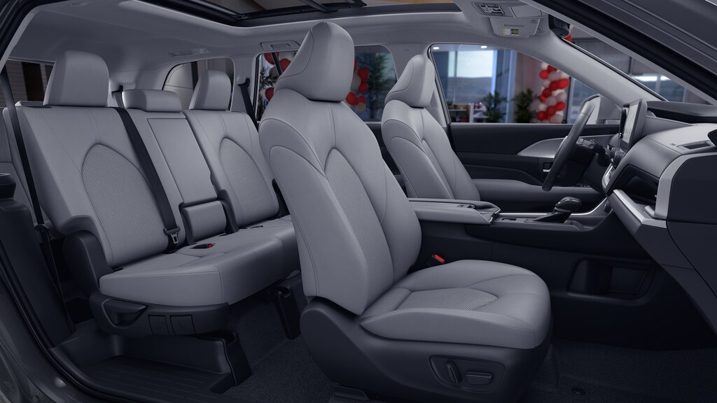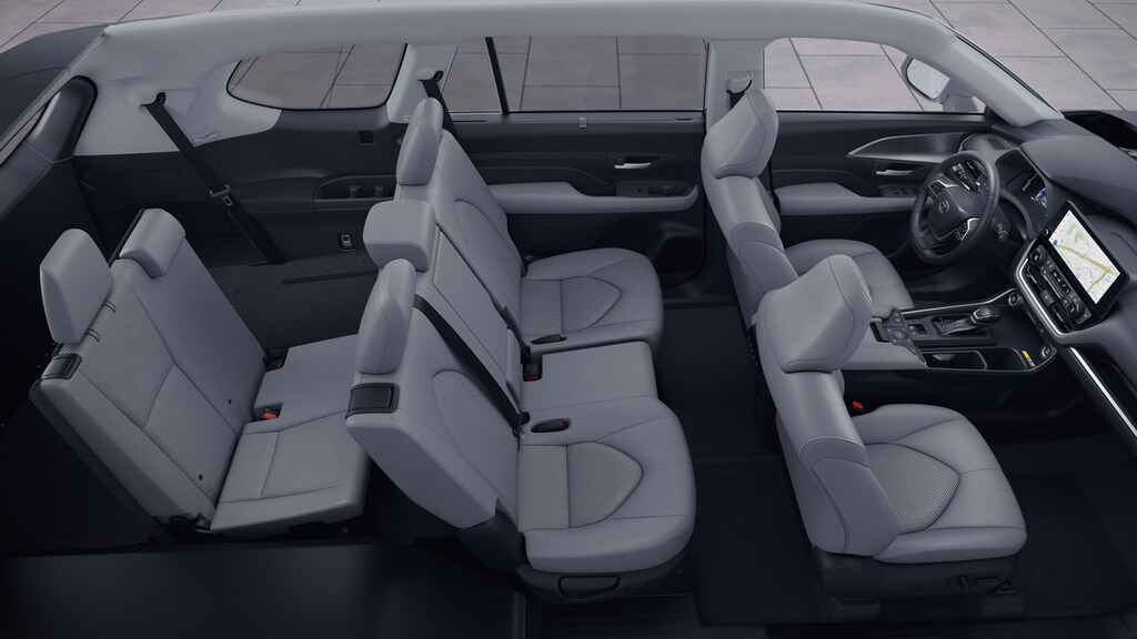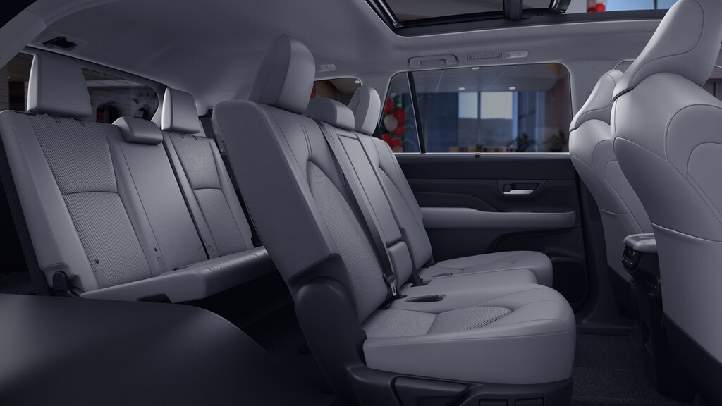 • 7-passenger seating with second-row fold-down captain's chairs and fold-down inboard armrests, adjustable headrests and two cup holders mounted on the floor; and 60/40 split, fold-down third-row seats with sliding headrests and recline function.