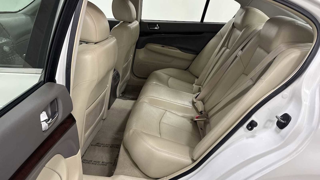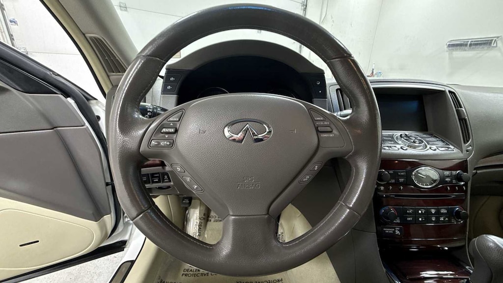 PREMIUM PKG pwr tilt/sliding tinted glass moonroof w/one-touch open/close, sliding sunshade, Bose premium audio system w/AM/FM radio & CD/MP3 player, radio data system (RDS), (10) speakers, drivers audio stage, 2GB Music Box, driver seat memory, exterior mirror memory, pwr tilt/telescopic steering wheel w/memory, entry/exit assist, rear sonar system, NAVIGATION PKG Infiniti hard drive-based navigation system w/touch screen, lane guidance, XM NavTraffic w/XM NavWeather, Zagat Survey restaurant reviews, voice recognition system, Bluetooth® audio, 9.3GB Music Box hard drive, digital video playback capabilities, DVD-video playback, TECHNOLOGY PKG intelligent cruise control, brake assist w/preview braking, pre-crash safety belts, rain sensing windshield wipers, advanced climate control system w/Plasmacluster air purifier, INTERIOR ACCENT PKG high-gloss maple accents on center console, instrument panel & doors, PERFORMANCE TIRE & WHEEL PKG 18 split 7-spoke aluminum wheels w/P225/50VR18 all-season tires.