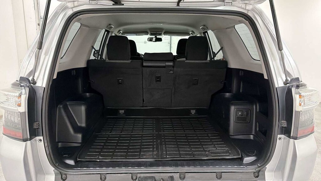 Edmunds.coms review says Theres a healthy 47 cubic feet of cargo room behind the second-row seats, a number that jumps to an even more impressive 89.7 cubic feet with all the rear seats folded down. This is far more space than the Grand Cherokee offers, and more than many large crossovers. .